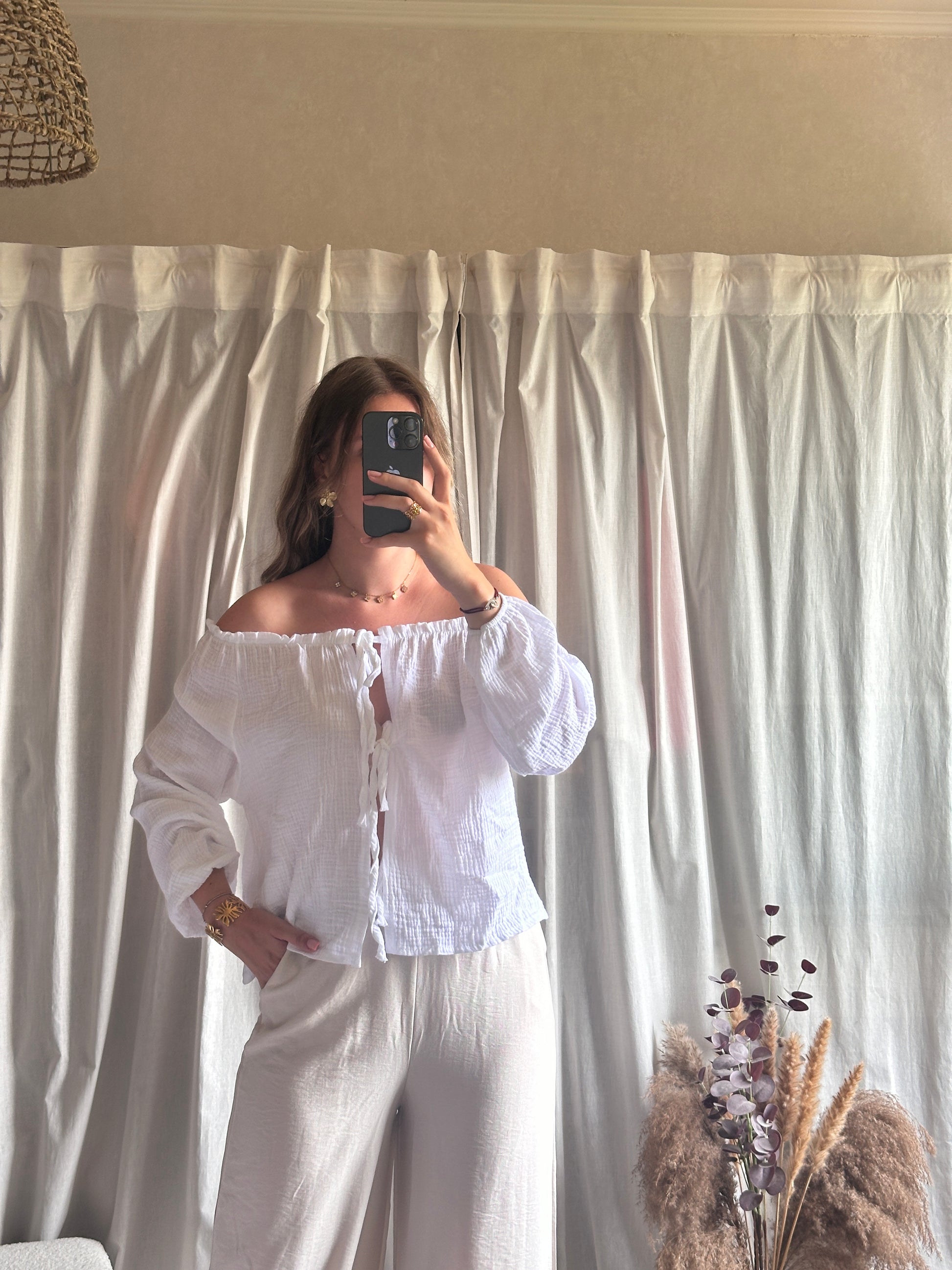 Top col bardot blanc 100% coton